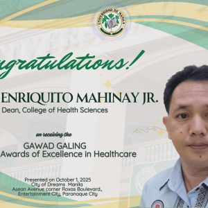 . πππππππππ π. πππππππ ππ. (Dean, College of Health Sciences) for being awarded the πππ°ππ πππ₯π’π§π ππ₯π¨πππ₯ ππ°ππ«ππ¬ π¨π ππ±πππ₯π₯ππ§ππ π’π§ ππππ₯ππ‘ πππ«π presented on October 1, 2025 at the City of Dreams Manila.